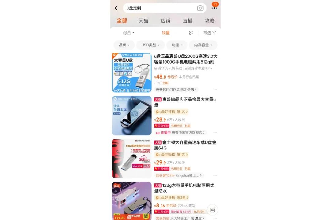 2.卖U盘,我们可以将虚拟资料导入U盘,一个定制U盘在某宝和某多,成本也就几十块,定价199-399,利润也是非常可观的