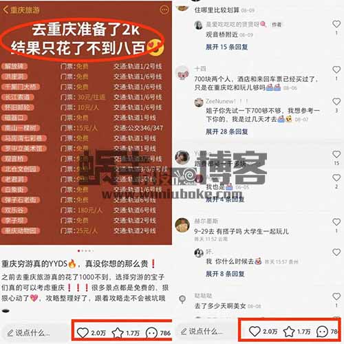 3、笔记类型:分享风景类型的账号太多了且没有亮点,而攻略型的笔记更受大众的喜爱。