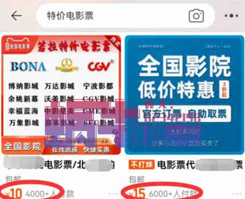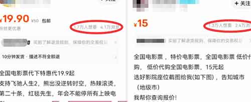 在电商平台上,如:某宝上销售特价电影票,同时引导客户加入私域,建立私域流量,提高客户粘性。