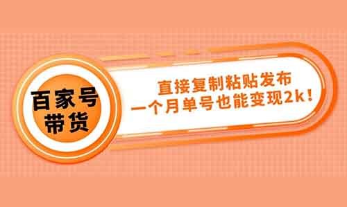 百家号也能带货,直接复制粘贴发布,一个月单号也能变现2000+!