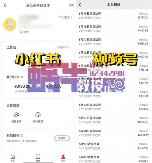 1、小红书商单、视频号创作者分成
