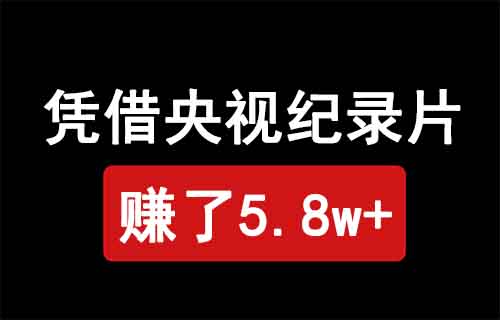 在这个大环境很差,“所有人”都觉得钱难赚的时候,有人却凭借央视推荐的纪录片,仅发32个作品,变现最少5.8万。