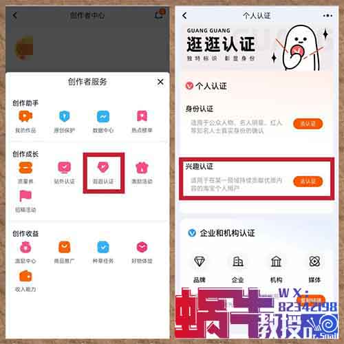 在新弹出的页面点击全部,然后点击创作成长里面的的逛逛认证,选择兴趣认证即可,如下图。
