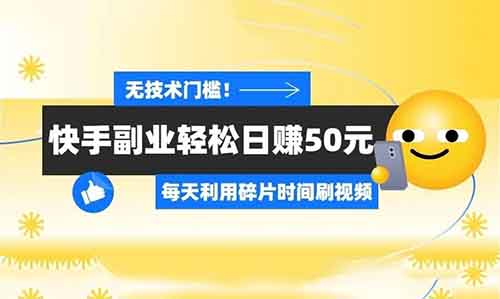 快手刷视频,副业轻松日赚50元!无技术门槛,适合宝妈、上班族的新手红利项目!