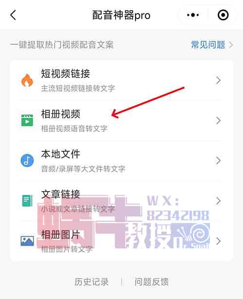 选择【相册视频】选择,把你要解析视频上传,然后就可以获得对标视频的文案了。