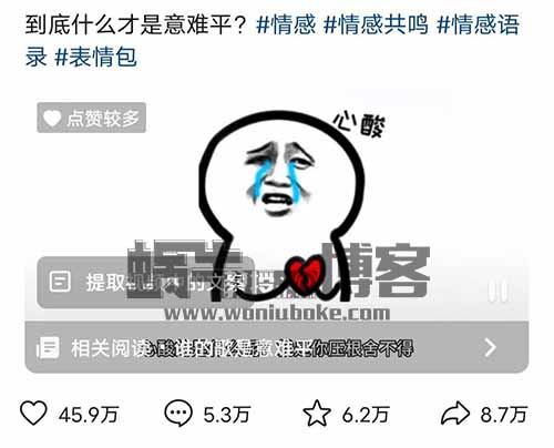 这种作品的关键在于文案,它能引发许多人的共鸣,因此点赞和转发数量也较高。视频内容通常包括一些表情包或网络热图。