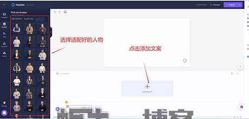 选择完了之后,会在侧面展示出来这些AI数字人的形象,你根据自己的喜好去选择男士的或者女士的形象都是可以的。