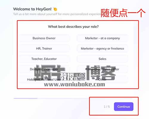 注册成功之后,它会跳出来一个页面,这个页面的话它上面有很多选项,我们直接选其中一项,随便点一个就可以了,点Continue。