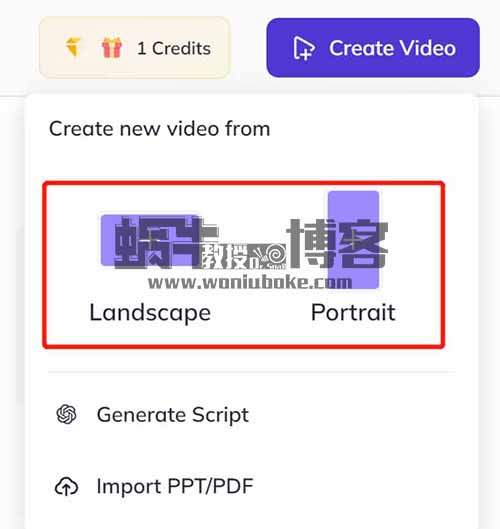 然后它会让你选择,你创建的这个视频,你想选择创建横屏的还是竖屏的。