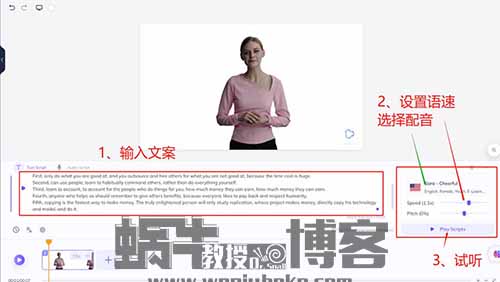 我们要根据文案去生成一个老外AI数字人的这样的一个视频。