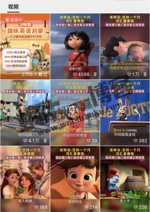玩法就是混剪热门萌娃英语视频+英语动画,直播间卖英语动画资源,低成本,起号超快。