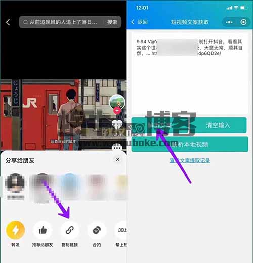 你也可以去某音搜索对标账号,寻找一些数据比较好的作品。复制链接,利用小程序去水印工具去除视频水印,把文案提取出来,复制粘贴保存备用。