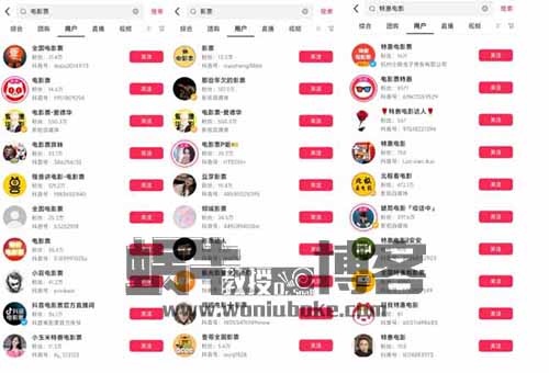 1)找对标账号,学习其账号昵称、头像、背景图的设置思路。可以直接在抖音中搜索“电影票”、“影票”、“特惠电影”、“优惠电影”等关键词,可以搜索出大把的账号,从中挑选那些有爆过视频或者图文的账号。
