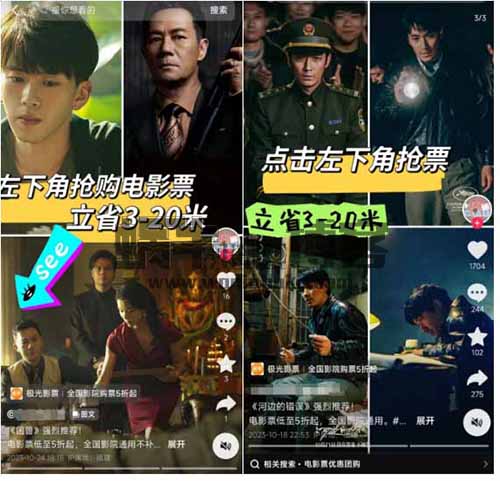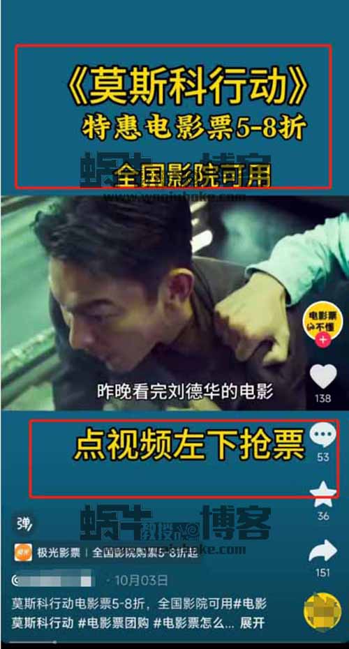 许多进过电影院的同学都知道,今年电影票的价格也是水涨船高,直接在票务平台上买电影票都是心疼肉疼的,这时候如果你在刷抖音的时候,正好刷到一个最近电影的简介,然后它还有电影票的优惠团购,你是不是大概率会点开看下?(蜗牛教授微信82342198)