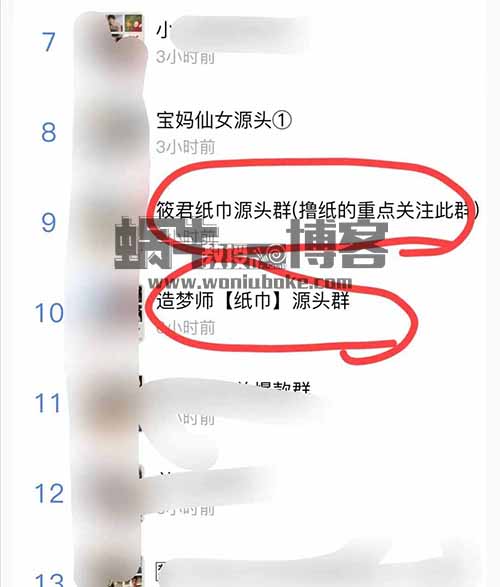 第三步,创建一个撸纸巾的群组。给群组起个名字,例如"低价撸纸"或"免费撸纸",将微信好友全部添加到群组中。纸巾是日常用品,几乎每个人都需要。微信群组最多可以容纳40人,不需要其他人的同意,如果微信好友有400人,可以创建10个群组。每天将纸巾链接发布到群组中,确保链接已转化为自己的链接。当然也可以将链接发布到朋友圈。(蜗牛知享网创资源站www.woniuboke.cn)