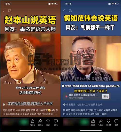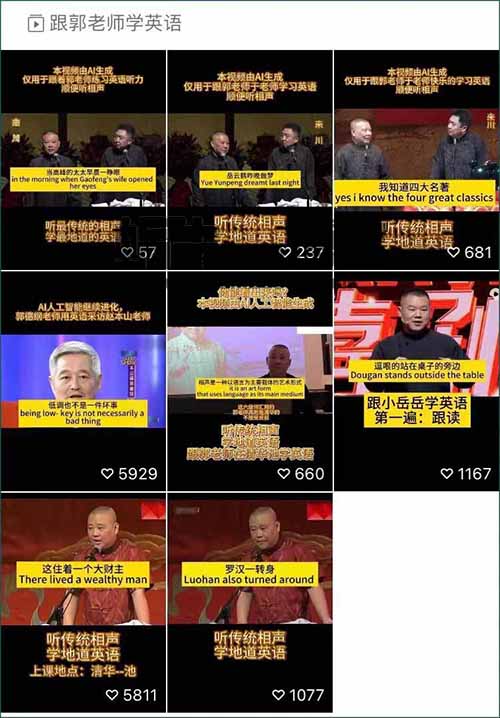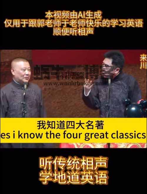 这个玩法叫郭德纲说英文,就是用AI工具把郭德纲的视频改成英语,嘴型都能对上。(蜗牛教授微信82342198)