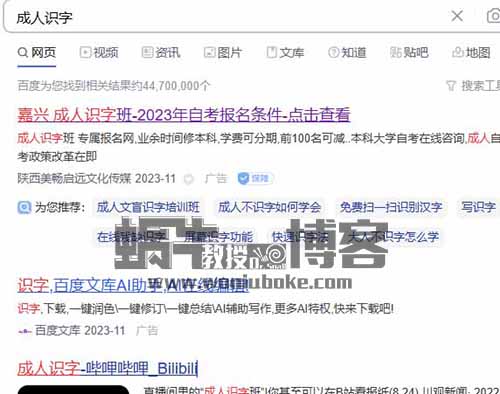 能投广告,而且是长时间投广告,说明是能赚钱的,这也再次验证了,成人识字项目的可行性。