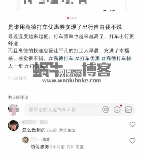 思路就是在小红书、知乎等平台上发引流笔记,比如“复制这段关键词,就可以免费领取打车优惠券”,只要是有需求的人,看到免费的打车券分享都会去复制的。