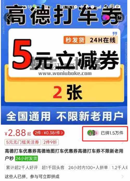 大家看下面这家店,标价2.88,已经卖了1.5万件了,净赚4万多。说明打车真的是大家的刚需了,大家也愿意为这个买单。但实际上,这种都是信息差,只需要一个活动链接的入口就可以了。