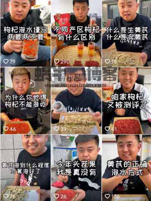 我随手给朋友,找了几个类似的抖音号给它参考,其中有一个卖枸杞的还是不错的。