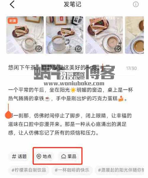 最好带上地点和菜品,这里的地点不一定是真实地点,差不多就行。平台不会去核实这个位置的真实性。