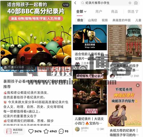 很多短视频平台都有一些纪录片,不管是大人、小孩都喜欢看,尤其是很多家长,喜欢给小孩看纪录片,下面就拆解分享一个和纪录片相关的副业项目。