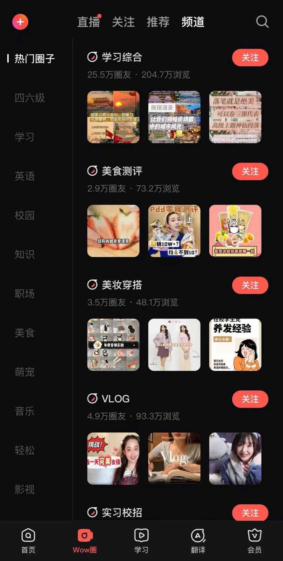 今天的项目是关于有道词典的,有道词典通常是被作为一个翻译工具,其实在这个平台上还有一个类似于小红书的社区,叫WOW社区,也像一个论坛,创作者可以随机选择一个主题分享相关图文或者视频。
