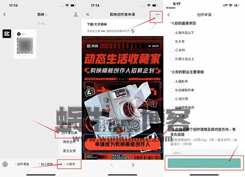 1、先下载“剪映APP”,微信搜索“剪映”,进入官方公众号,在“创作者招募”里面申请成为剪映模板创作人。