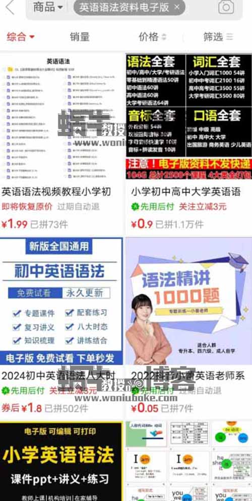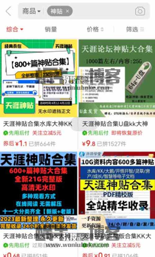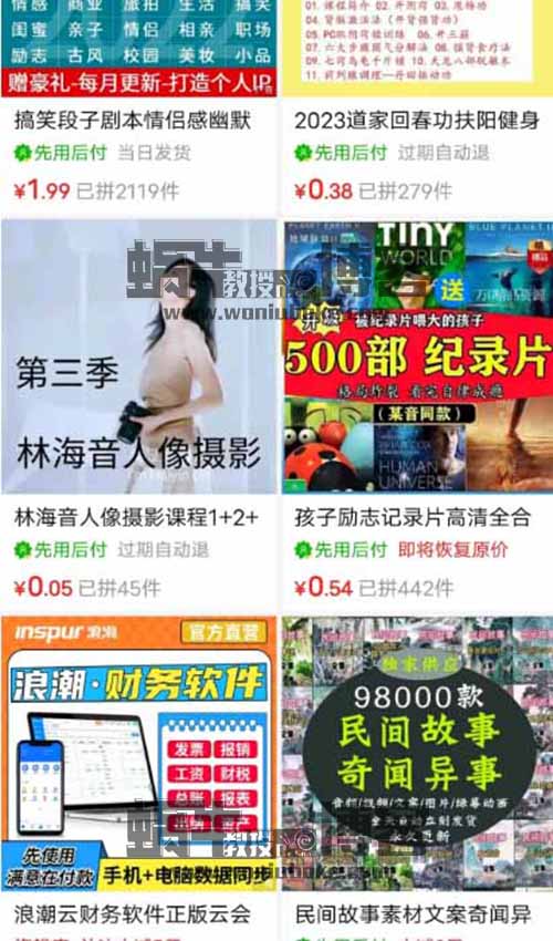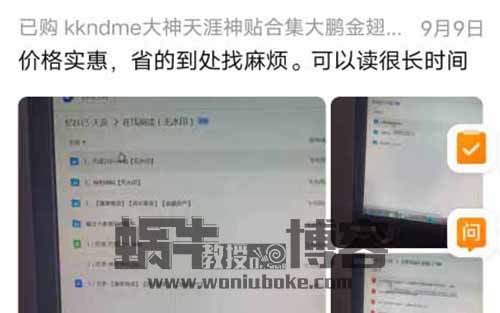 这样行不行呢?肯定是可以,只不过,你需要整理的齐全一些,一定会有人买单。蜗牛知享网创资源站www.woniuboke.cn