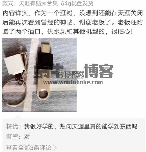 甚至,有人已经把这些资料,拷贝到U盘里面进行销售,再一次的将虚拟资料,包装成一个实物产品,也是有很多人喜欢的。