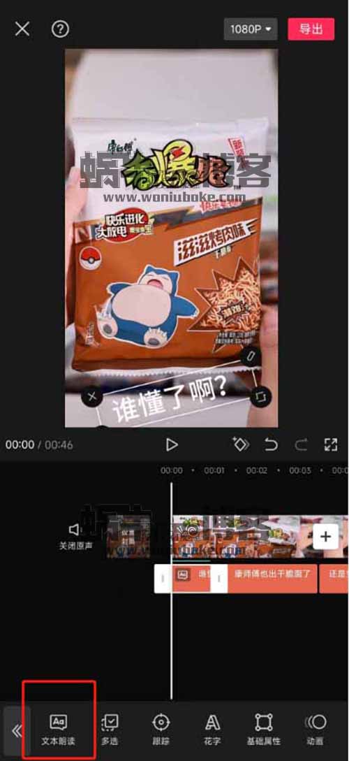 (3)内容制作:打开剪映APP,将下载好的素材导入。然后添加口播文案或自己准备好的文案,点击“文本朗读”功能,选择合适的配音。