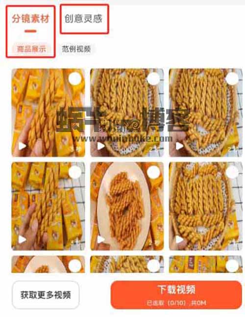 在选择商品时,建议挑选评价优质且佣金较高的零食产品。尽量避免选择大牌零食,因为竞争激烈,而且佣金通常不高,对于新手来说性价比较低。点击“创意灵感”,可以复制口播台词备用。