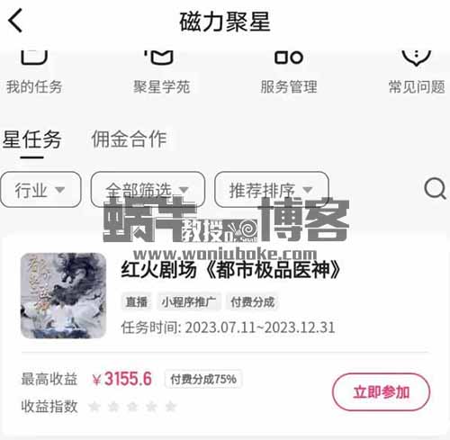 这里要说下开通官方的磁力聚星也是需要门槛的,需要一万粉丝,当然,如果你有一百粉丝联系官方的客服也是可以开通的,一百粉丝其实也不难,坚持发发作品还是很容易涨粉的,再不行可以去某宝某多直接买流量达到条件。蜗牛知享网创资源站www.woniuboke.cn