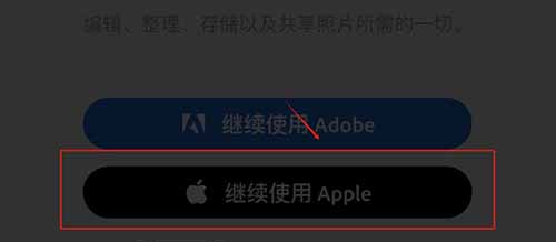 2、注册并登录“Lightroom”,苹果系统的小伙伴可以直接使用Apple ID直接注册,安卓系统的小伙伴则需要选择先注册“Adobe”,点击“继续使用Adobe”。