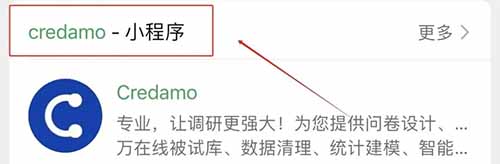 打开微信,搜索"Credamo见数",进入官方小程序。