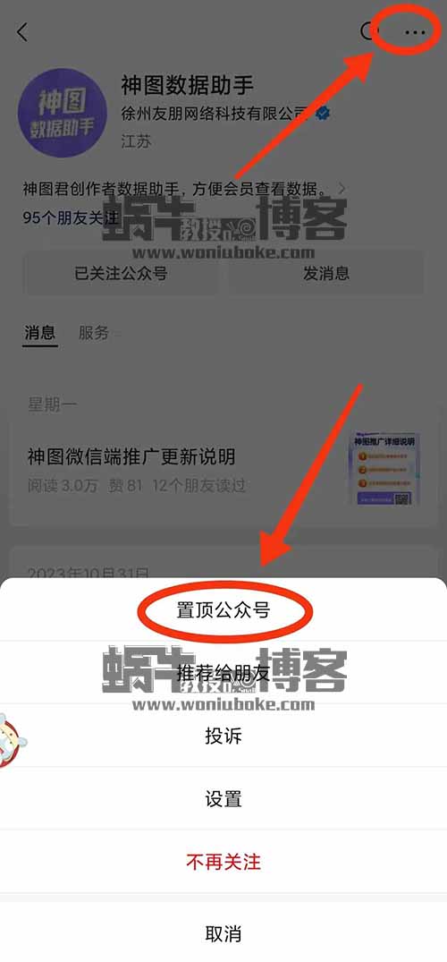 提交后进入平台,关注并置顶神图数据助手这个公众号,点右上角三个点,就可以置顶。以后直接从神图数据助手就可以进入神图平台。