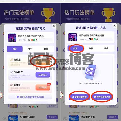 选择一个热门小程序,点右边的“直接推广”,选择平台,选择“挂载推广”,查看挂载教程,获得抖音推广码,就可以去制作作品推广了,有人点你的链接试玩,你就会有相应的收益。