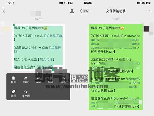 配置自动回复功能后,用户只要关注就会自动弹出进群链接,这种就是用一个代码实现的。