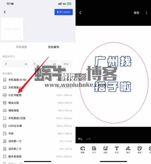 下载“稿定设计”然后在首页点击“新建画布”选择小红书的尺寸就可以创建。