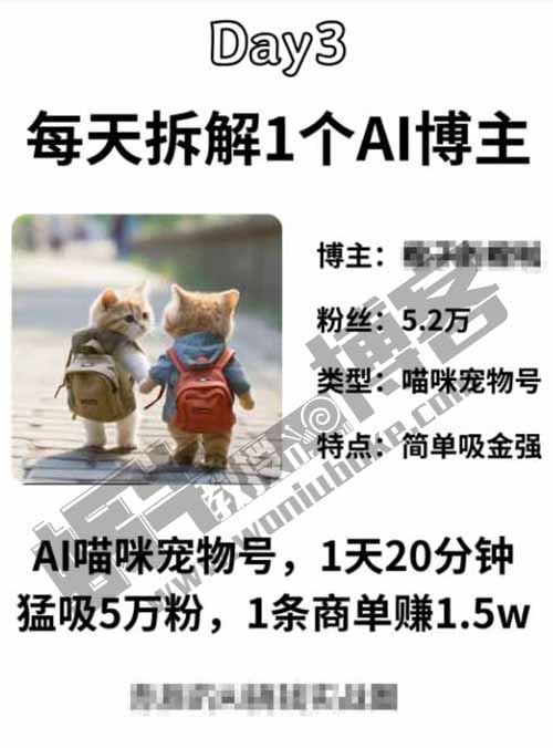 AI喵咪宠物号,每天20分钟 猛吸5万粉,1条商单赚1.5w