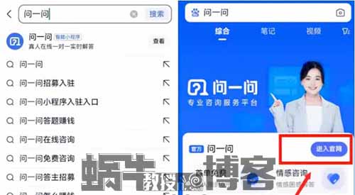 完成后在搜索框输入“问一问”,进入后点击“答主中心”。