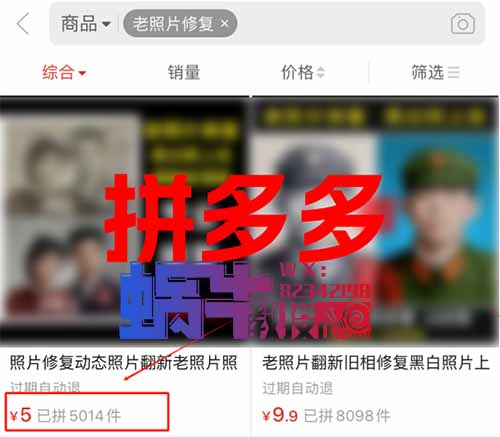 实际上在拼夕夕上,修复的价格大约在5元左右。我们可以通过在短视频平台进行宣传引流接单,然后在拼夕夕上下单,从中赚取这个差价。