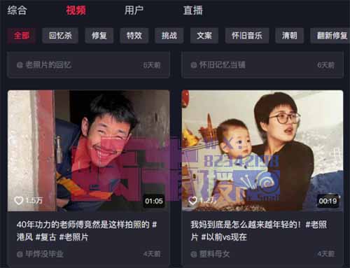 打开某音,搜索老照片,保存到本地并使用第三方工具进行二次原创。