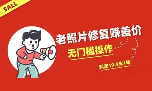 冷门项目老照片修复赚差价玩法,无门槛操作,利润19.9米/单!