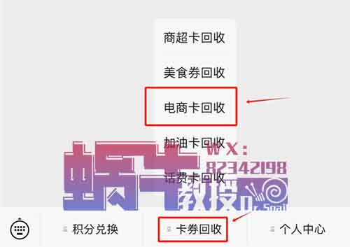 点击“卡券回收”,选择“电商卡回收”,按照系统要求一步步进行操作即可。