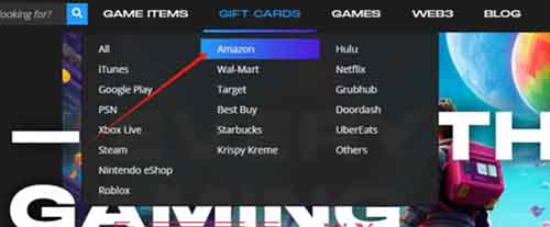 进入网站之后按照平台要求进行注册登录,登录之后进入首页,点击菜单栏的“Gift card”,选择“Amazon”即可。