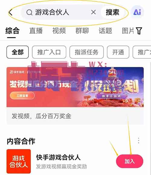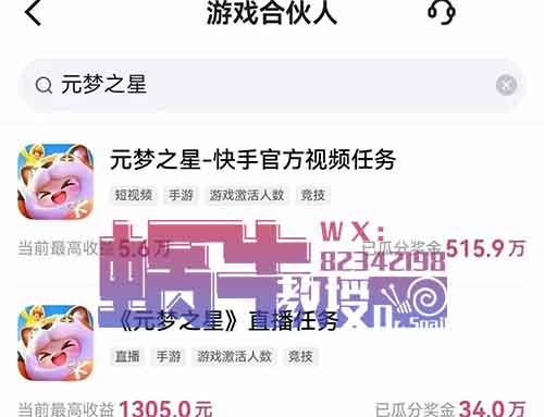在快手平台搜索关键词“游戏合伙人”,点击“加入”,搜索选择“元梦之星”,点击“参加活动”。