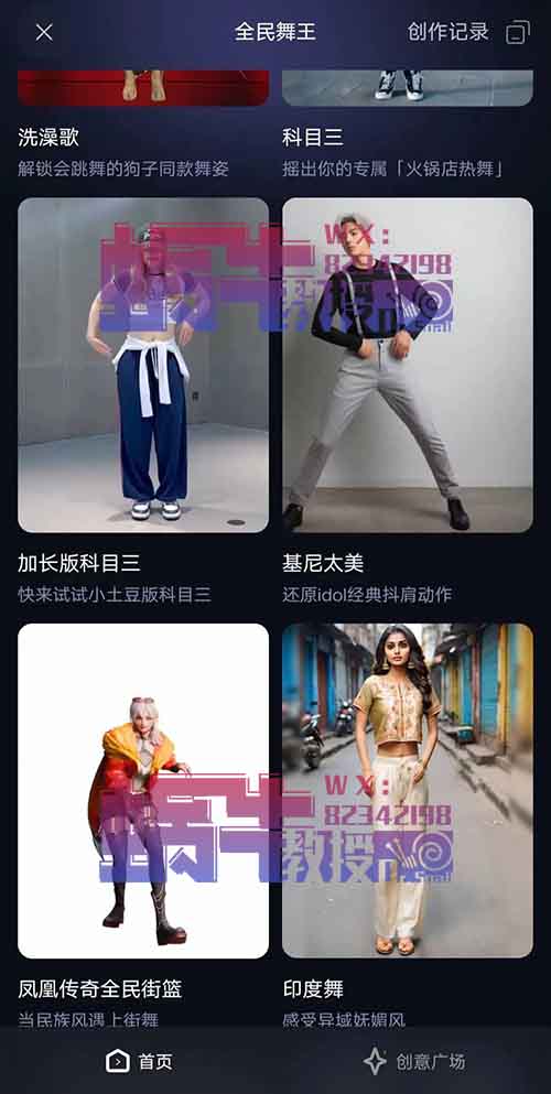 然后,在众多模板中选择“全民舞王”,这里提供了丰富的跳舞模板供你选择。