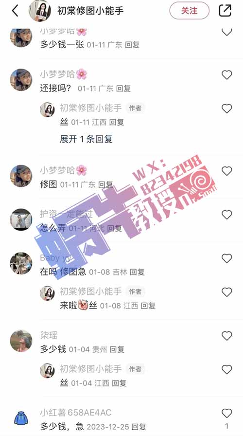 通过在小红书上简单搜索,我发现这个市场需求巨大。排名靠前的作品轻松获得成千上万的点赞,而评论区中,大多数用户都渴望获得P图服务。这无疑是一个精准的目标用户群体。