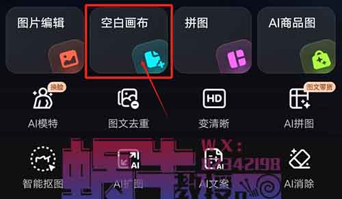 5、准备一张纯色背景和一张同行的模板图,打开“美图设计室”,点击“空白画布”。